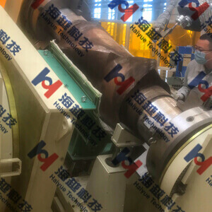 用于客戶現(xiàn)場的軸類表面堆焊保溫。軸表面進(jìn)行加熱保溫,焊接部位的溫度在250℃左右。筒體材質(zhì):ZG300-600。采用圓弧感應(yīng)器從軸底部進(jìn)行加熱維溫。